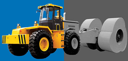 沖擊式壓路機通過牽引車的牽引,帶動非圓形的沖擊輪,利用沖擊輪自身的重量和前進時的沖擊力,對水泥路面、路基進行破碎和壓實。
